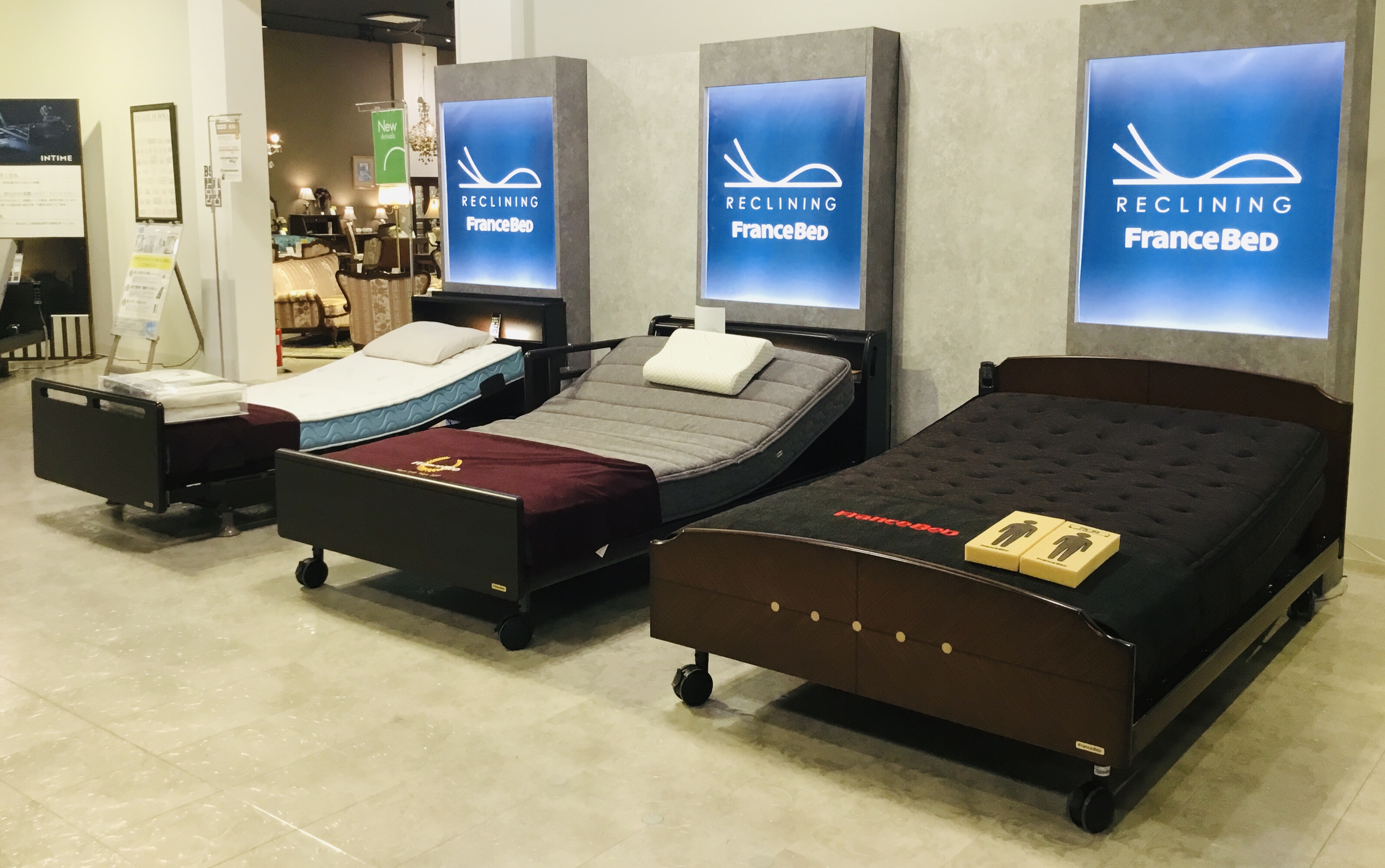 リクライニングベッド売場は、2階ベッド売場の奥にございます。