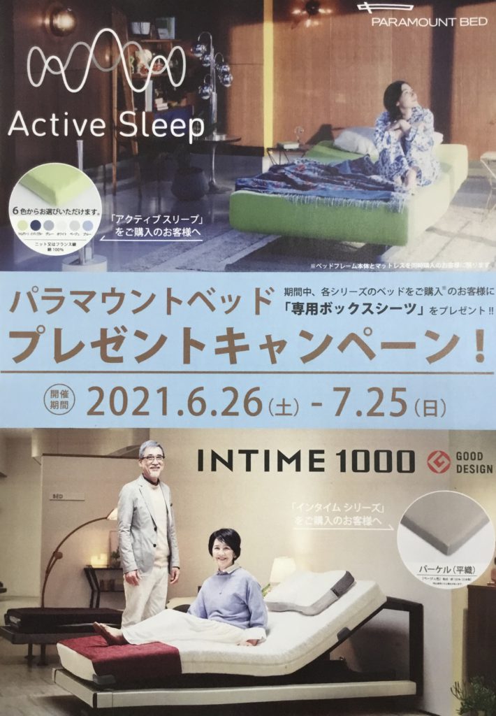 キャンペーン期間中にパラマウントベッドの『Active Sleep』と『INTIME シリーズ』をご購入の方に「専用ボックスシーツ」をプレゼント致します!