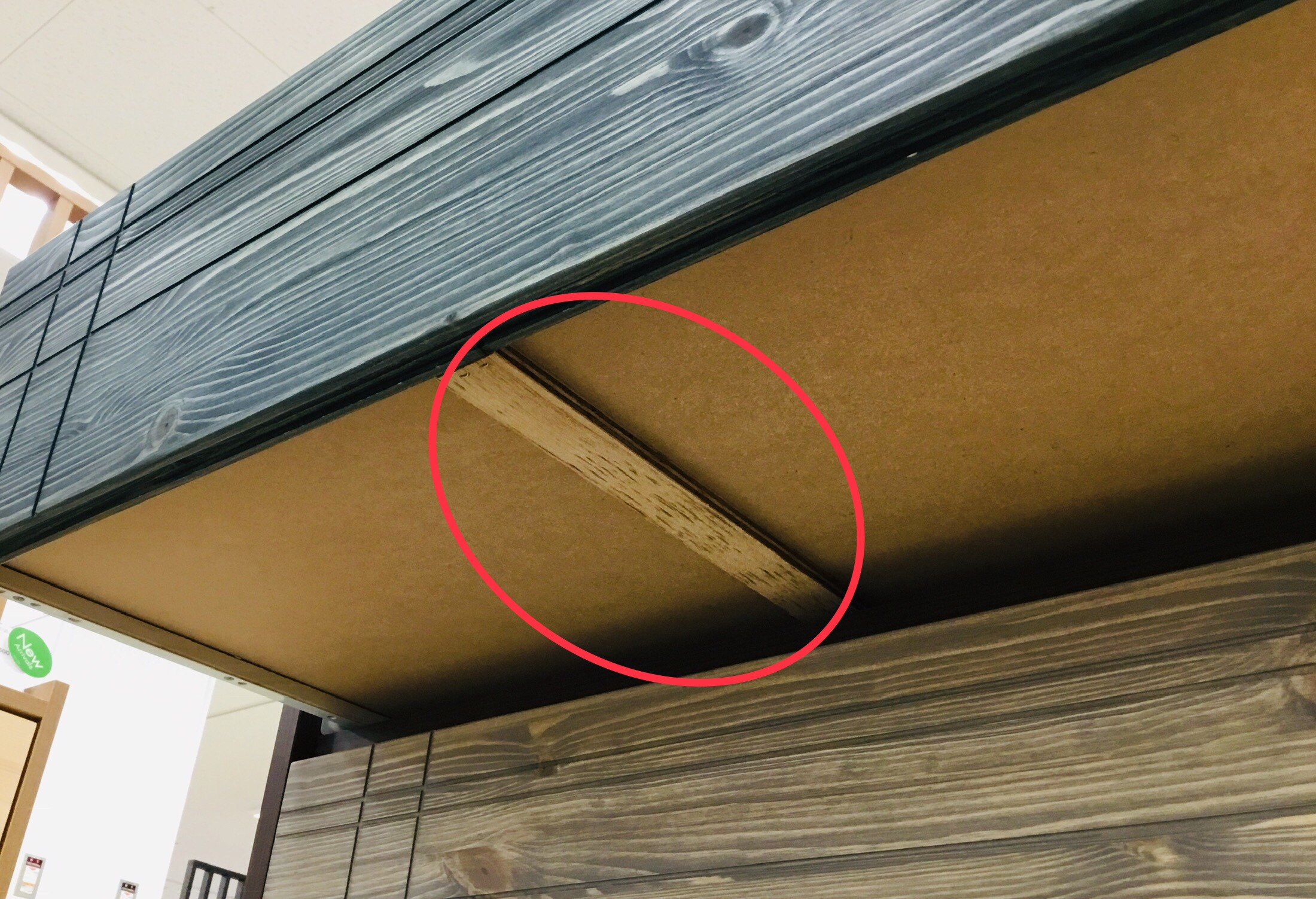 また長い引き出しには引き出しの底に補強の桟が付いているので、丈夫なつくりになっています。