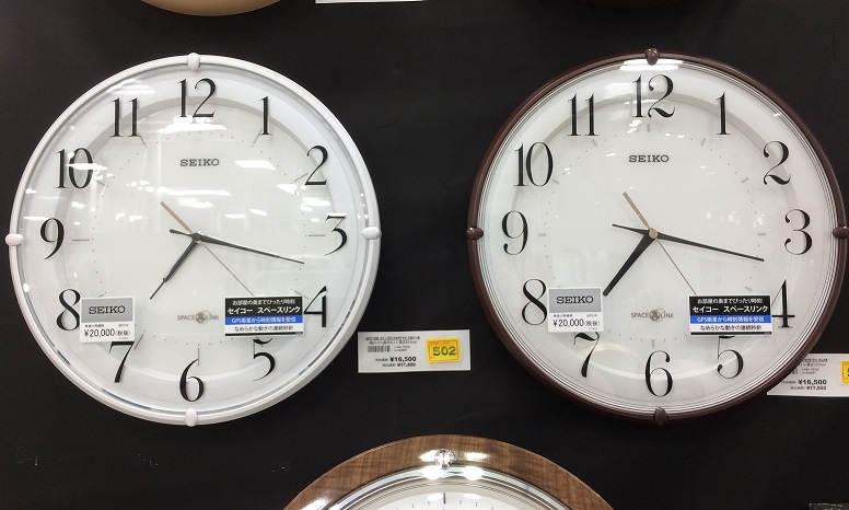 左側 スペースリンク電波掛け時計シロパール16,500円(税抜)