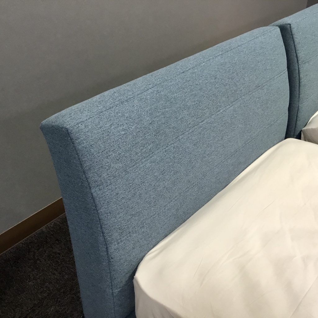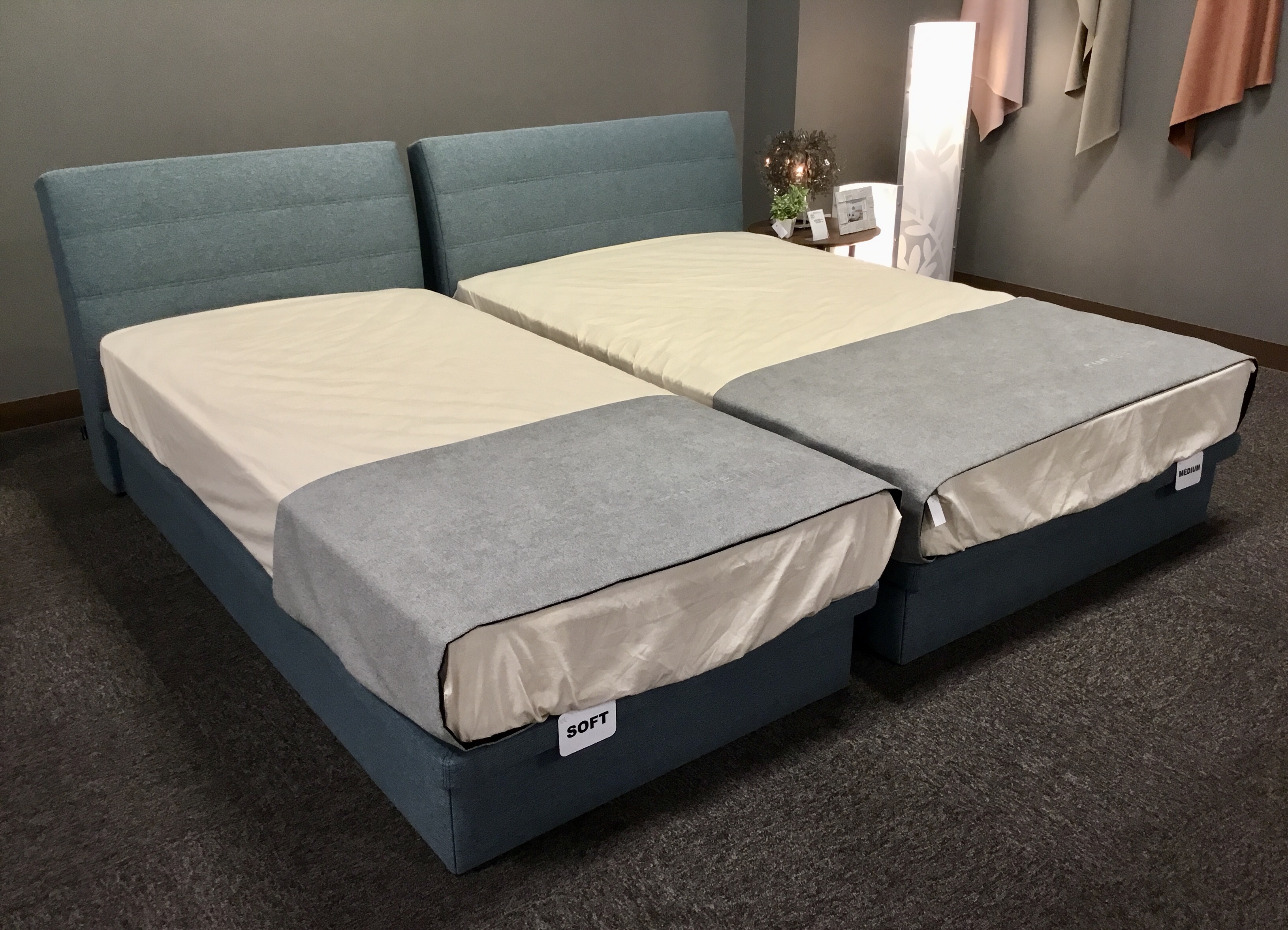 ベッド売場では、Eランクファブリック「FE-472」で張ったベッドフレーム「マルチコンフォートシステム205」の展示があります。